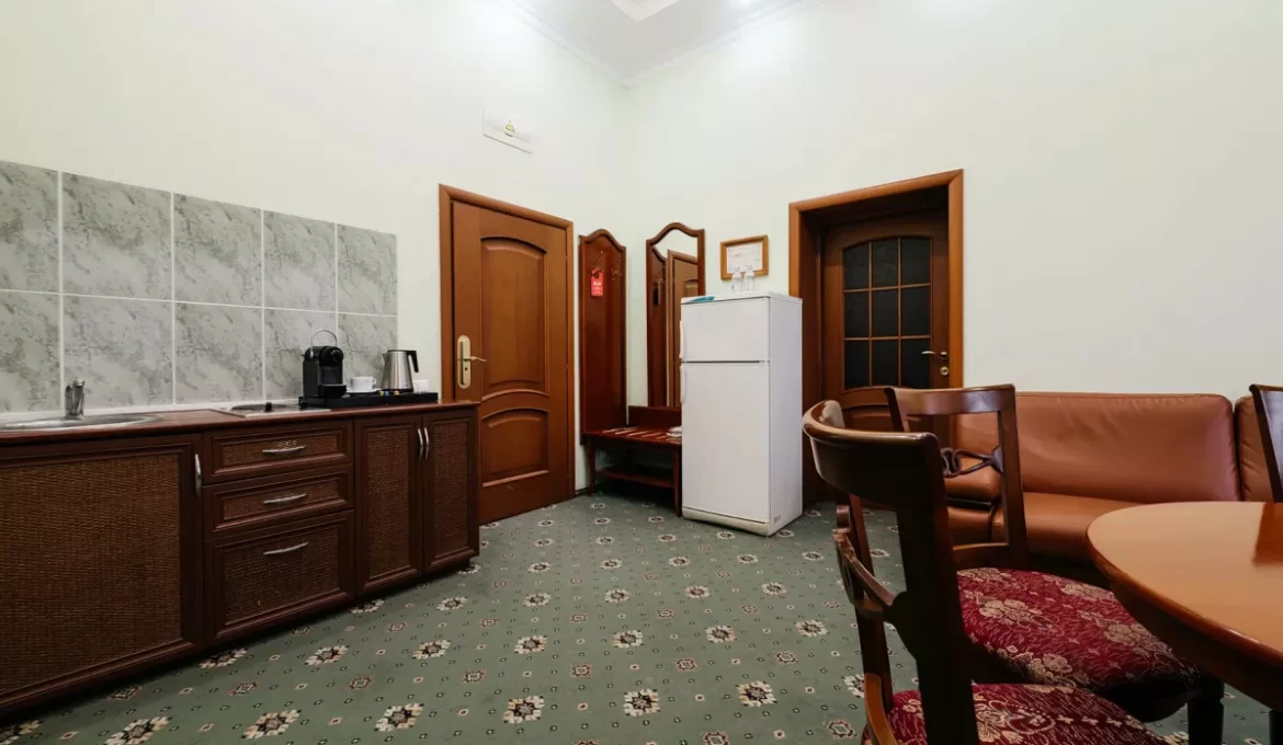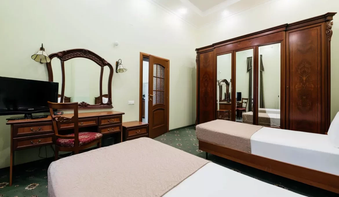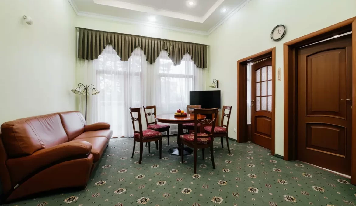 Трехкомнатный номер повышенной комфортности, расположенный на четвертом  этаже,  с просторной гостиной, 2 спальнями, ванной комнатой и панорамным видом на горы.Гостиная